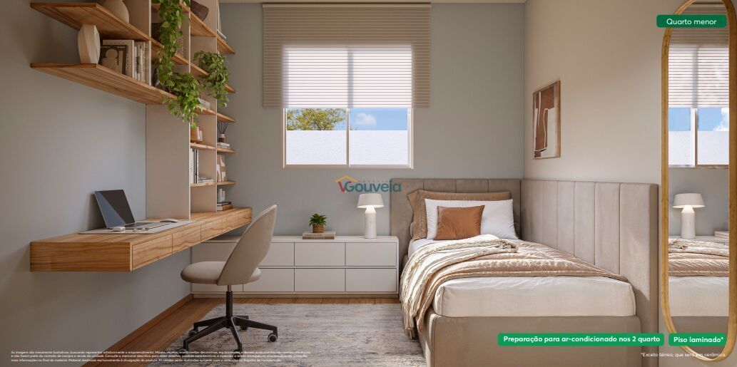 - Piso laminado nos quartos (exceto térreo), preparação para ar-condicionado