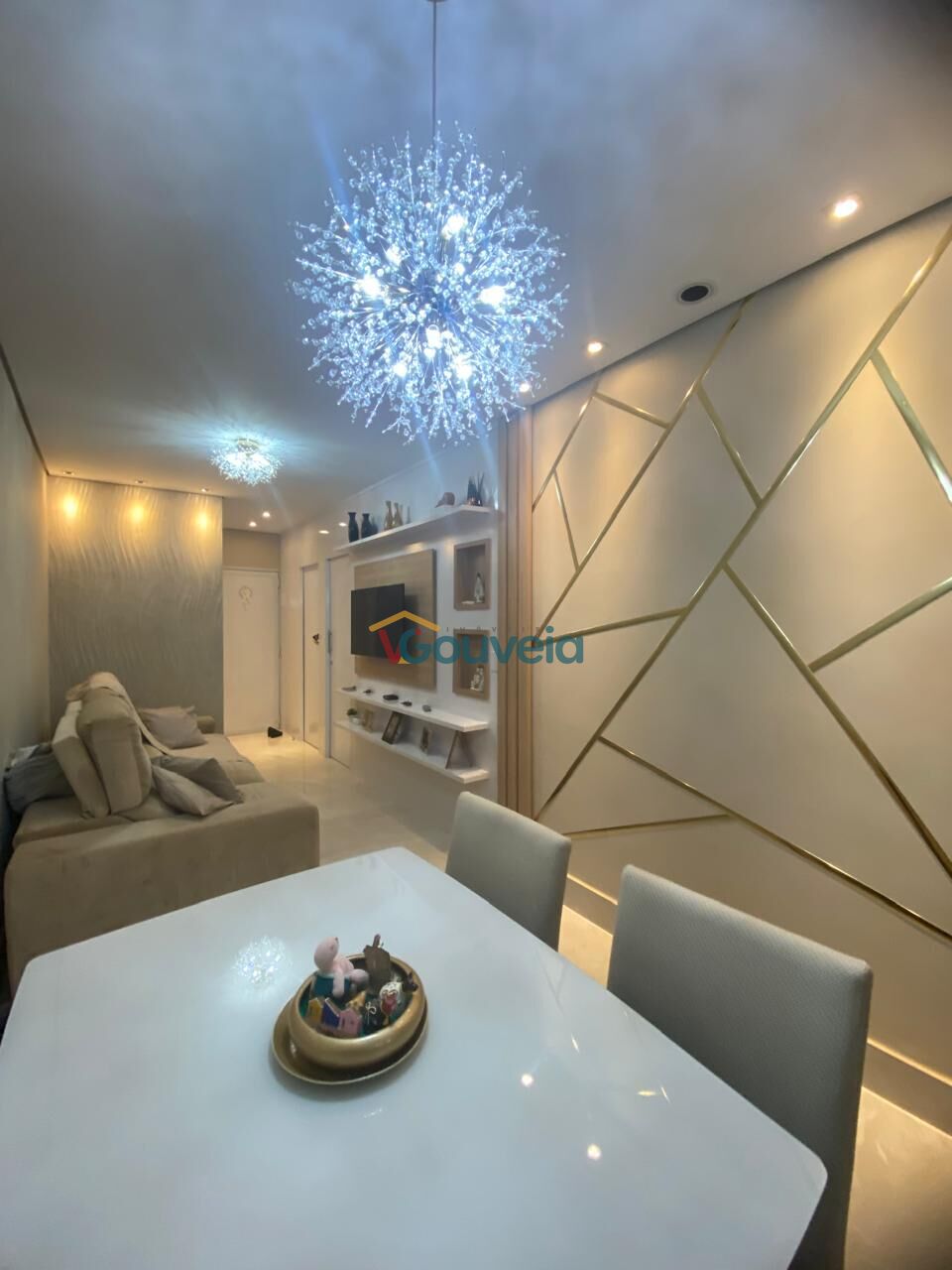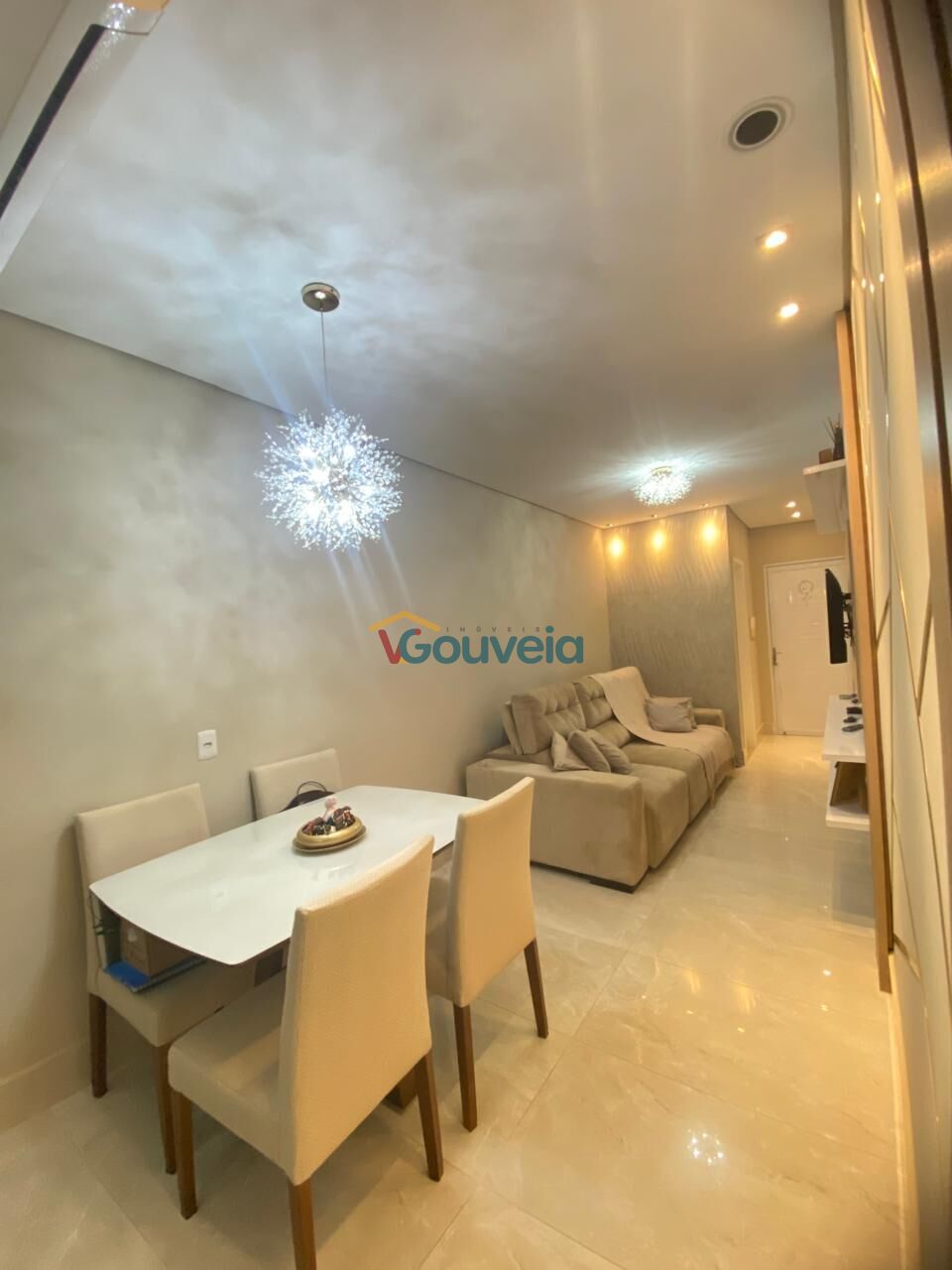 Lava louças , Cortinas retrateis, Balcão/mesa com 5 cadeiras , Mesa de jantar 4 cadeiras ,6 lustres e paflons, sofá retrátil 3 lugares